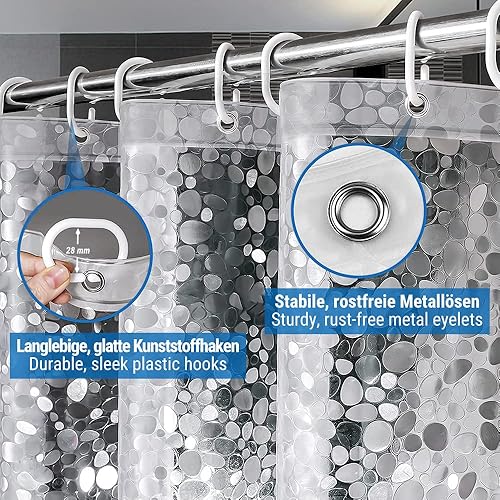ecooe Rideaux de Douche EVA 3D Motif de Pierre, 120 x 200 cm Rideau de Bain Semi Transparent Étanche Anti-Moisissure, Rideau de Salle de Bain avec 8 Anneaux pour Douche à Domicile ou Baignoire