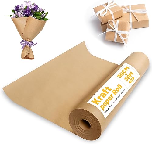 Papier kraft brun 30cmx30m Papier cadeau Rouleau de papier kraft 80g/m² pour l'emballage, l'artisanat, papier d'emballage, rouleau de papier cadeau, rouleau d'emballage pour la poste, les paquets