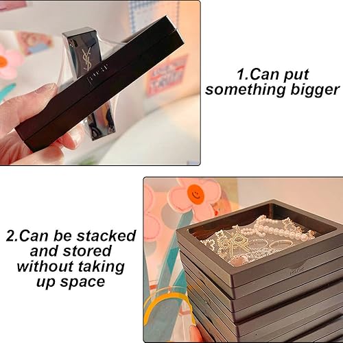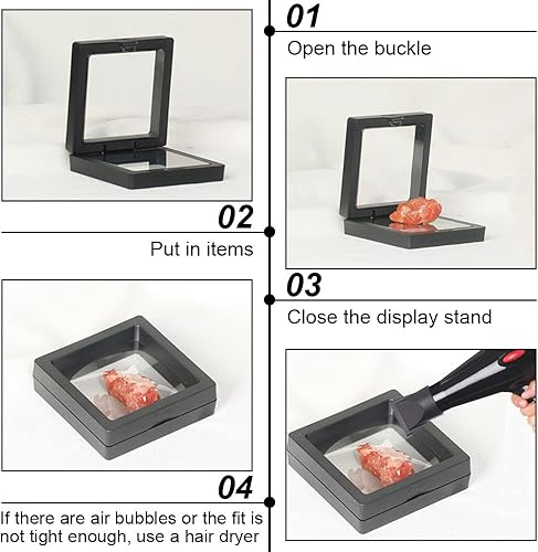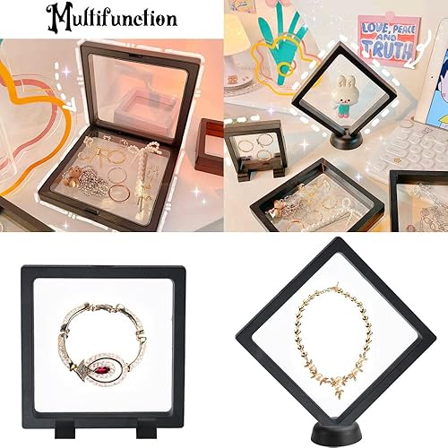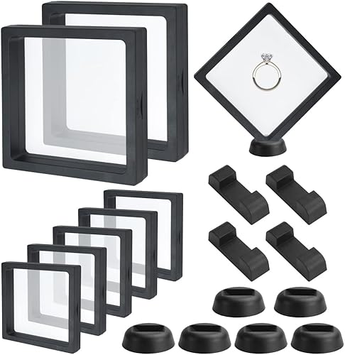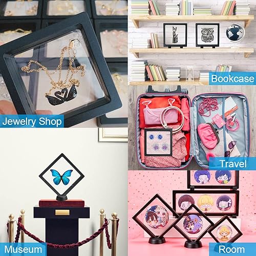 LYTIVAGEN 6 PCS Cadre Flottant Ttransparent 3D en PE Présentoir Flottant Bijoux 2 Tailles Cadre d'Affichage avec 4 Bases Rectangulaires et 6 Rondes pour Vitrine Médailles, Bijoux, Spécimens (Noir)