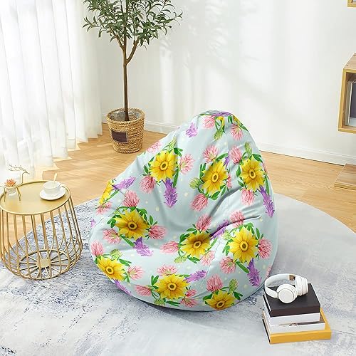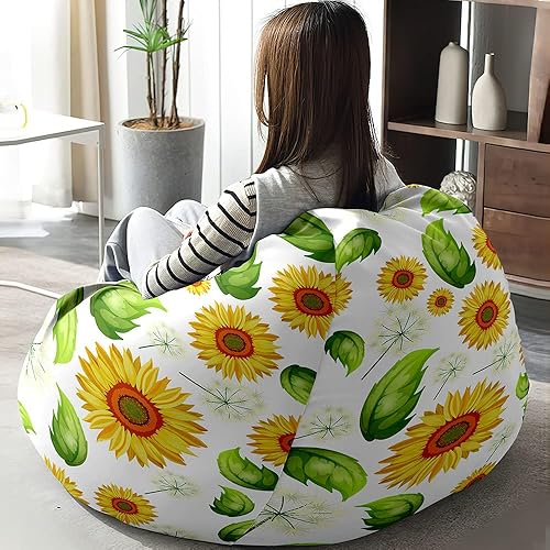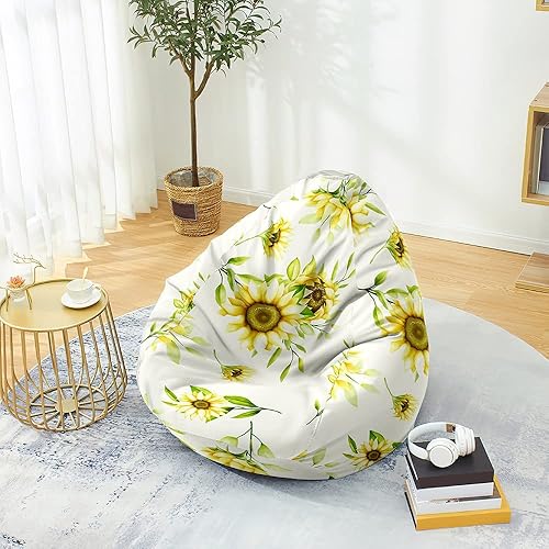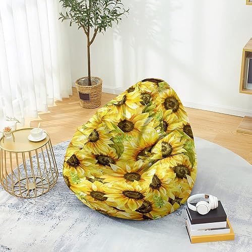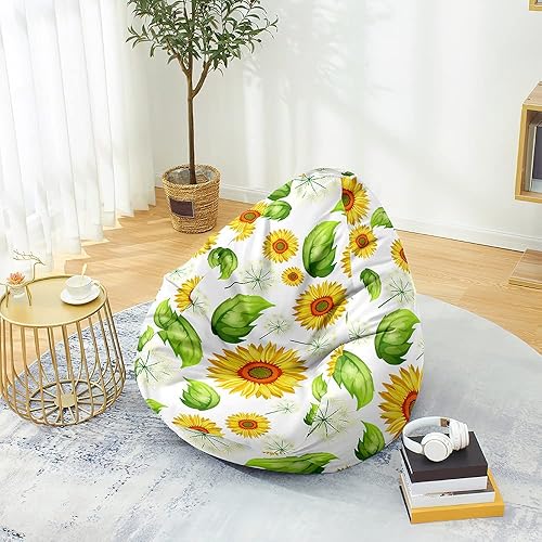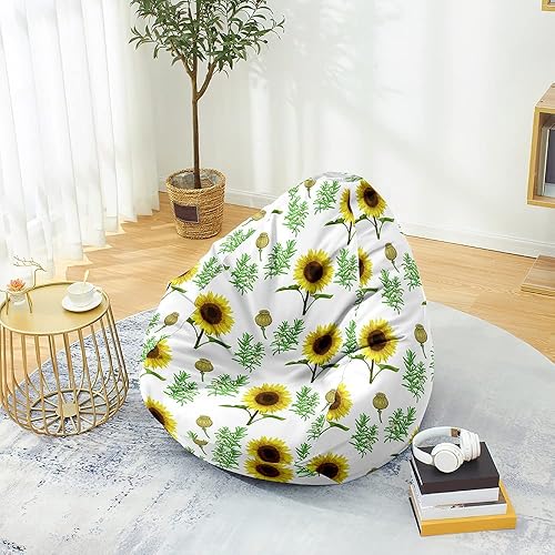 Mateju Pouf Poire Adulte et Enfants, Tournesol 3D Pouf Geant Chambre, Bean Bag Chair, pour Grand Canapé, Chaise Longue Grande, Fauteuil de Salon pour Intérieur Extérieur (M,pétales Blancs)
