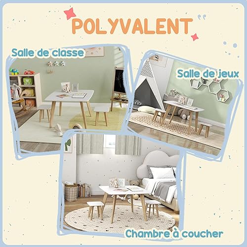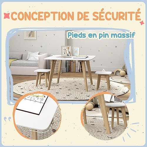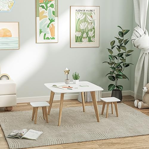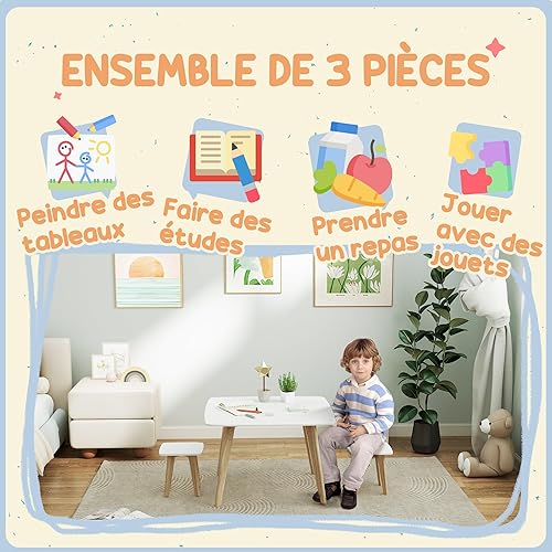 AIYAPLAY Table Enfant avec 2 chaises, Ensemble Table et chaises Enfants 3 pièces, pour Salle de Jeux, Chambre et Maternelle, garçons et Filles de 3 à 8 Ans, Blanc