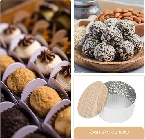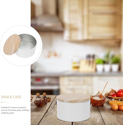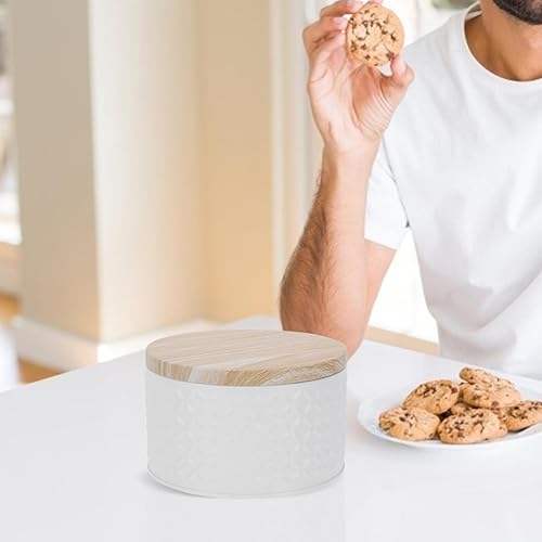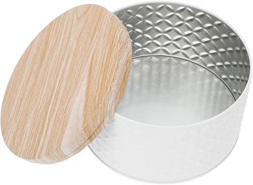 HEMOTON Boîte à biscuits ronde en métal - Avec couvercle en bois - Boîte à biscuits, bonbons et pâtisseries - 13,7x13,7cm - Style rustique