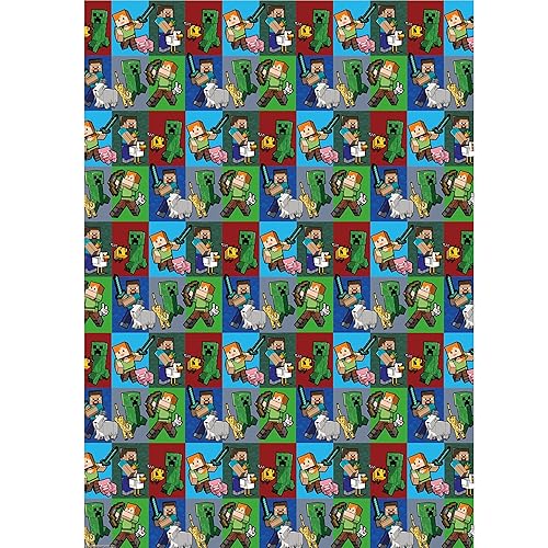 Papier cadeau officiel Minecraft, 2 feuilles et 2 étiquettes, papier cadeau pour cadeaux, emballage cadeau sous licence officielle