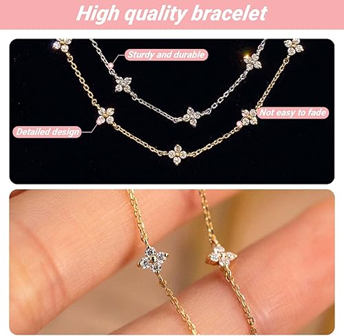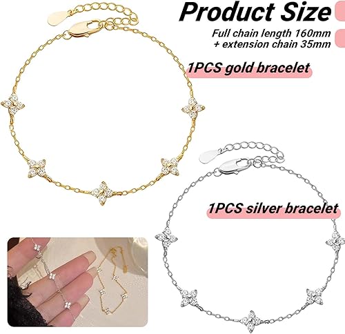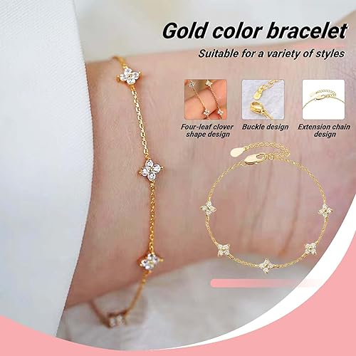 TREABEAR 2PCS Four Leaf Clover Bracelet for Womens, Bracelet Réglable en Personnalisé, Accessoire Saint Valentin Gourmette Femme pour Cadeau Anniversaire Saint Valentin