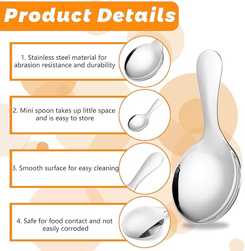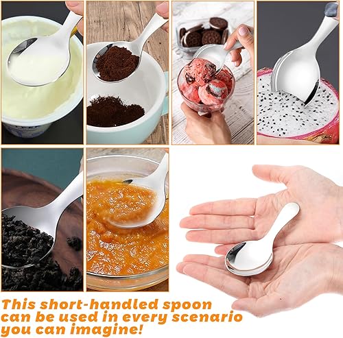 JJUNW Lot de 6 cuillères à manche court - Cuillères à café en acier inoxydable - Grandes cuillères à glace de 9 cm - Couverts de service polis miroir pour thé, café, dessert, farine, confiture, yaourt