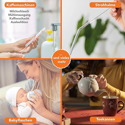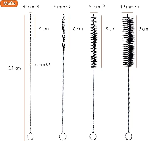 fancility® Lot de 4 brosses de nettoyage pour bouteilles AirUp, machine à café, etc. XL 32 cm de long, bec verseur à café et brosse pour tuyau à lait, petite brosse pour nettoyer le tuyau à lait