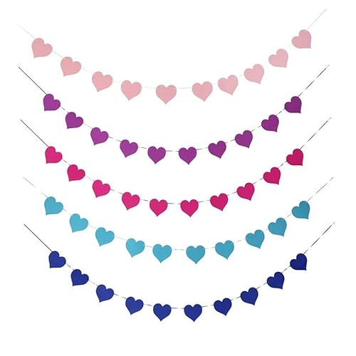 OKUMEYR Bannières vintage pour mariage Bannière en feutre rose en forme de cœur Guirlande de fête de 110 pouces