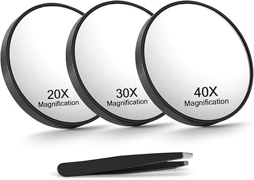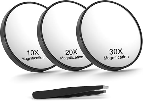Macaki Miroir grossissant 10X/20X/30X avec ventouses et pinces, miroir de maquillage grossissant de voyage de 8,9 cm, noir, 3 pièces