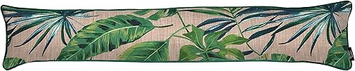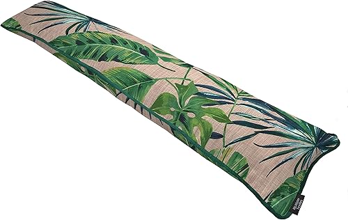 McAlister Textiles Boudin de porte en velours motif feuille de palmier vert émeraude exotique imprimé velours doux | Butée de porte de fenêtre décorative de luxe + isolant contre les courants d'air
