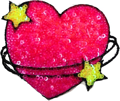 FILOUFACE Patch Ecusson Thermocollant Coeur et Etoiles Paillettes Sequins 6,50 x 8,50 cm