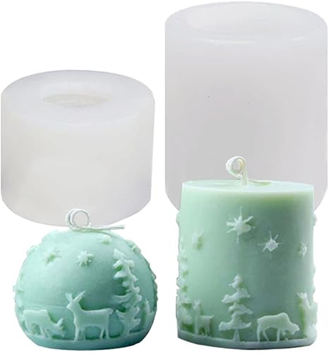 Junhui 2 Pièces Moule Bougie Silicone en Forme de Noël, 3D Moule à Bougies, Noël Moules en Silicone pour La Décoration de La Maison, DIY Bougies d'Aromathérapie