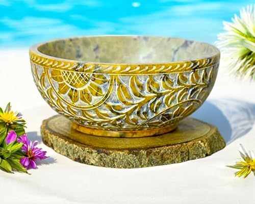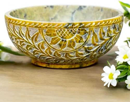 Ajuny Bol en stéatite avec motif floral fait à la main pour décoration de table de cuisine 12,7 cm