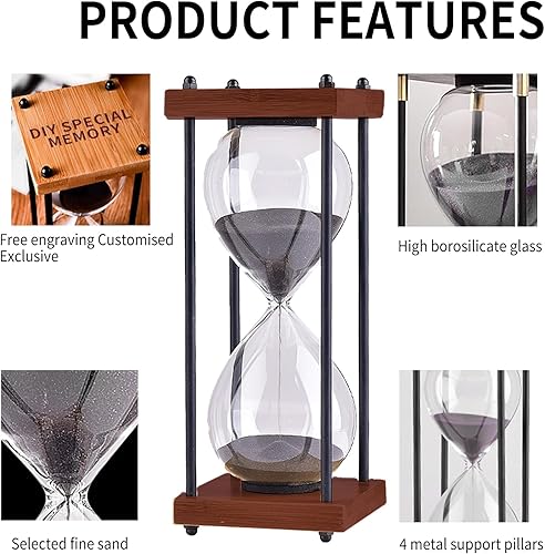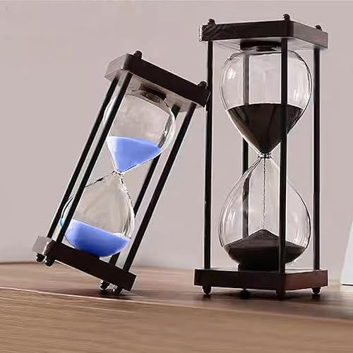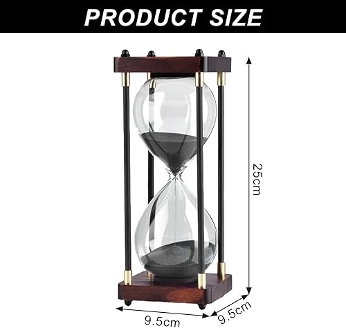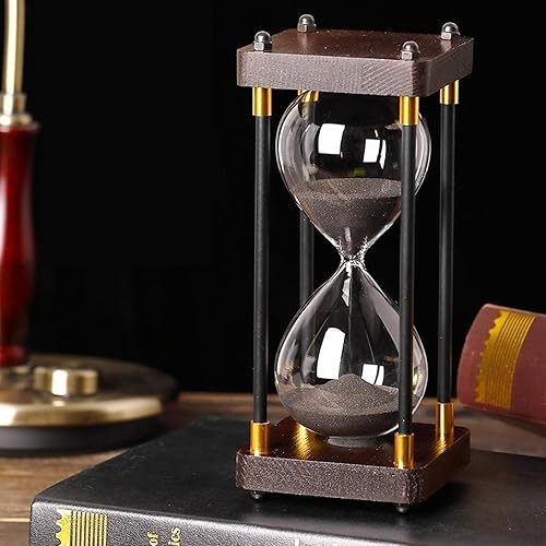 Kamanan Hourglass Sablier décoratif en verre avec béquilles latérales dorées pour salon, table basse, école, jeu 30 minutes Noir