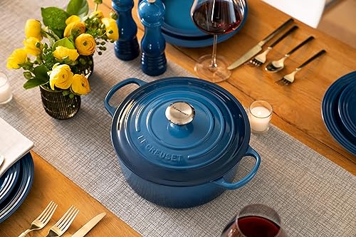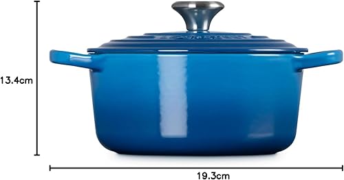 Le Creuset, Cocotte Signature en Fonte Émaillée avec Couvercle, Ø 18 cm, Ronde, Compatible avec Toutes Sources de Chaleur (Induction Incluse), Capacité : 1.8 L, 2.572 kg, Bleu Marseille