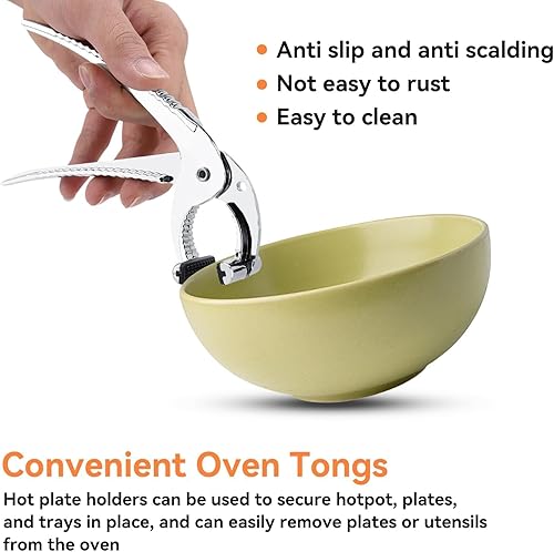 Pince à Four, Anti-BrûLure Bol Clip,Pince en Acier Inoxydable,Anti-Chaud Anti-DéRapant Bol Clip,pinces pour la poigne, Pince Anti-brûlure Pince à Aliment Pince Cuisine pour Plats Chauds du Four, 17cm