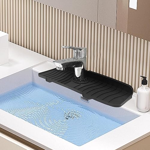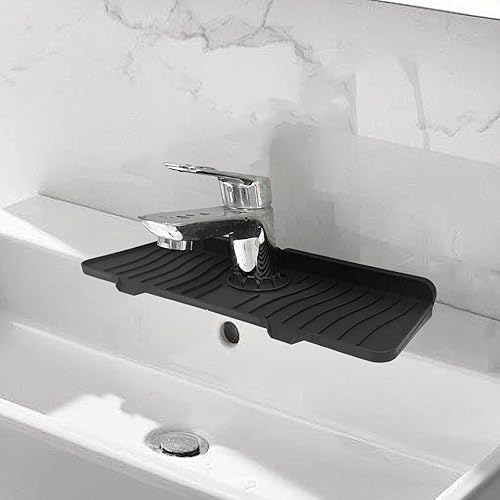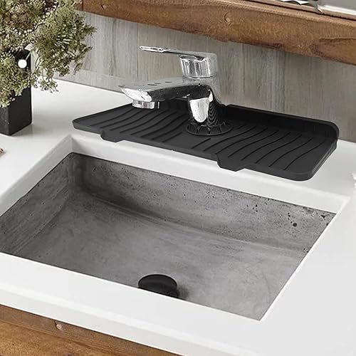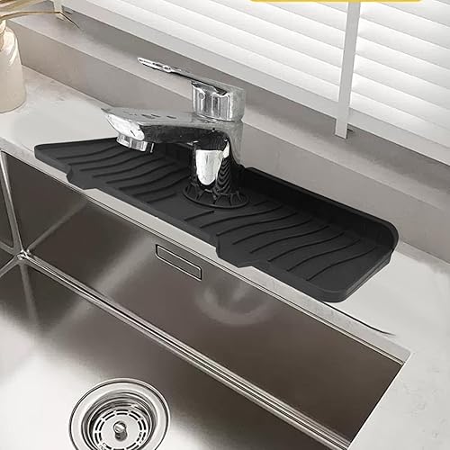 Gralara Évier de tapis de robinet en silicone drainage tapis de cuisine évier à éclaboussures, Black 46x14.5x1.68cm