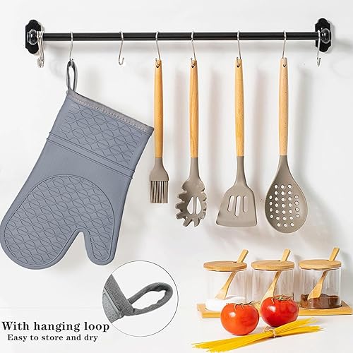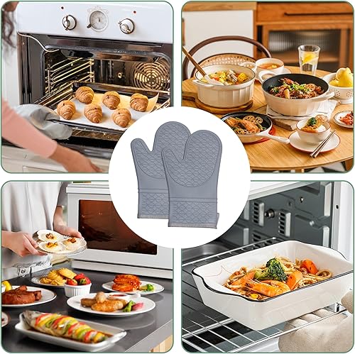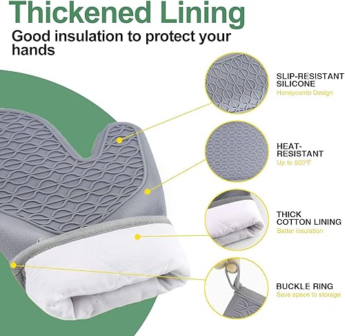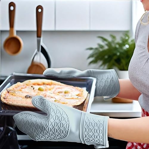 BelleVive Lot de 2 gants de cuisine en silicone, gants de cuisine résistants à la chaleur avec doublure en coton doux, gants de cuisine imperméables antidérapants, maniques pour barbecue