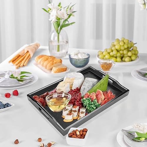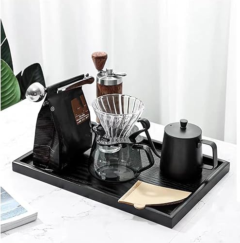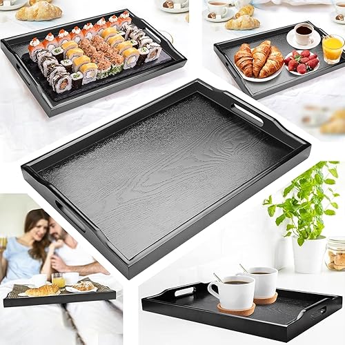 Grand Plateau de Service rectangulaire en Bois, 40 x 30 cm Bois Massif Thé Café Snack Food Repas Plateau de Service Plateaux d’Assiette, pour Patio, Restaurant, BBQ, Party