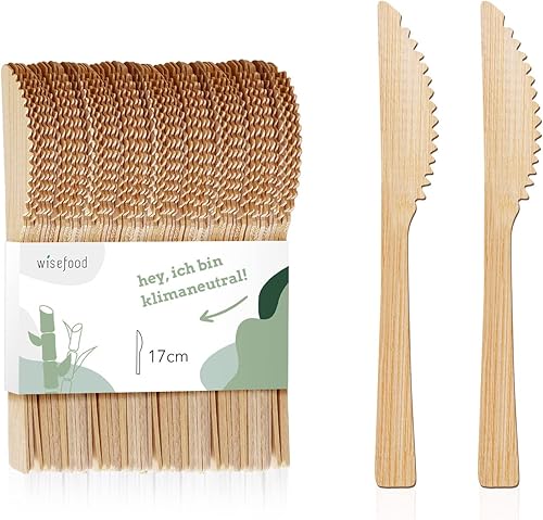 wisefood Couteaux jetables en bambou, 100 pièces de couverts en bambou 17cm, Couverts jetables biodégradables, Couteaux naturels en bambou, Vaisselle jetable, Vaisselle de fête