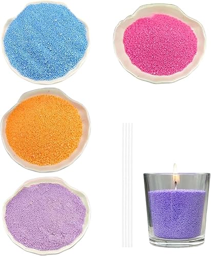 Mikiuly Sable de Bougie avec mèche,Sable de Cire parfumée et mèche,Kerzen Sand,Granulés de Cire pour Bougies aromatiques,120G (Violet,Rose,Orange,Bleu)