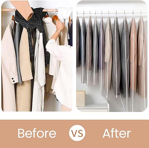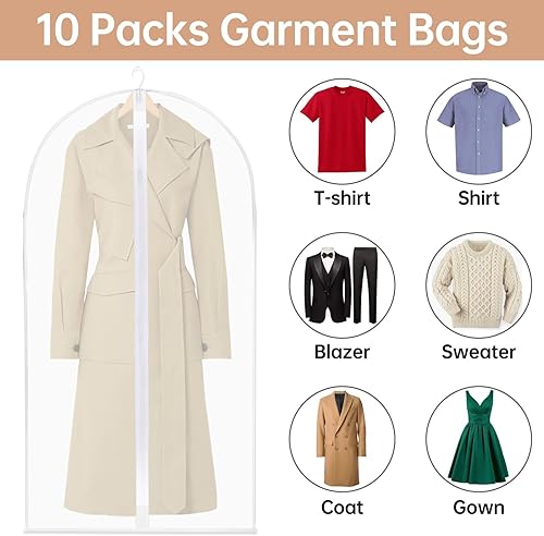 Minnhua 10 PCS Rangement pour Vêtements et Penderies Housse Vetements à Suspendre 60 * 140CM Housse de Protection Anti Poussière Etanche Humidité Housse de Rangement Semi Transparente