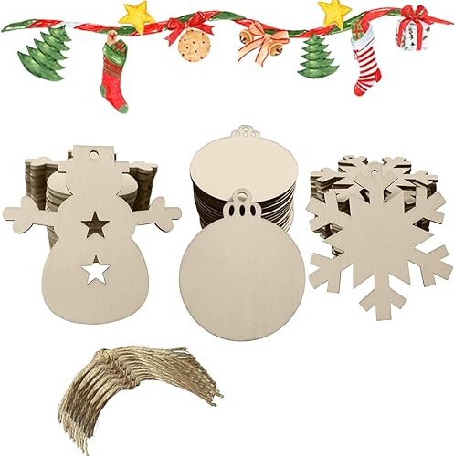 Molyorch 60 Pièces Deco Noel Bois a Peindre, Sapin Noel Puce Bois Pendentif, Noël Bois Puce Arbre Ornements, pour Décoration D'arbre de Noël, Pendentifs Décoratifs Fête, Morceaux Bois DIY