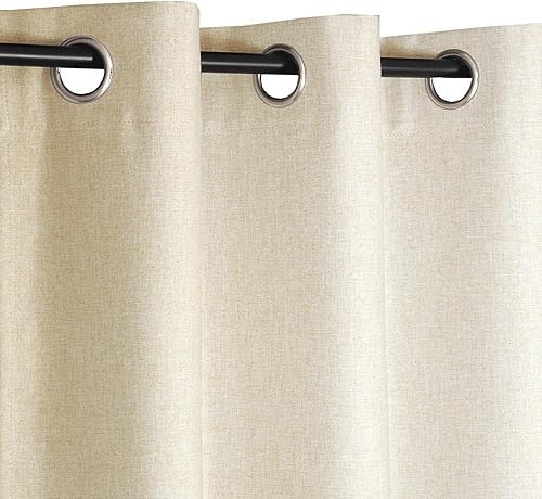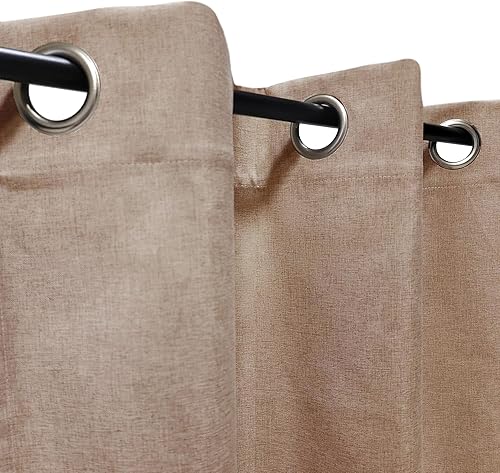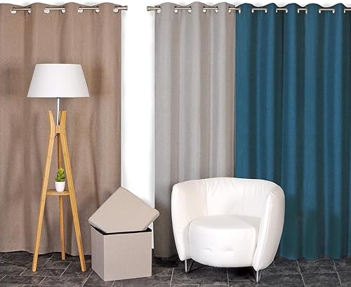 Atout Ciel Rideau chiné Effet Lin 100% occultant à œillets 140x240cm prêt a Poser, Beige