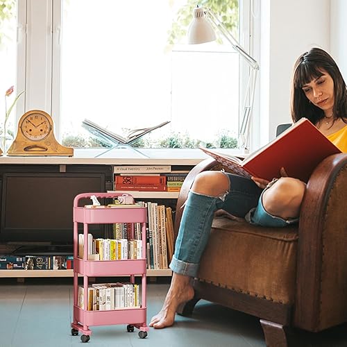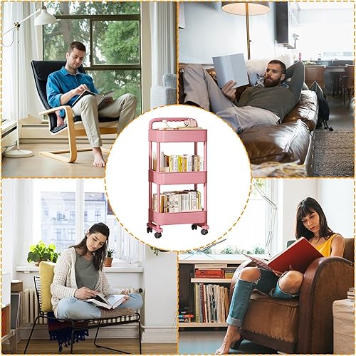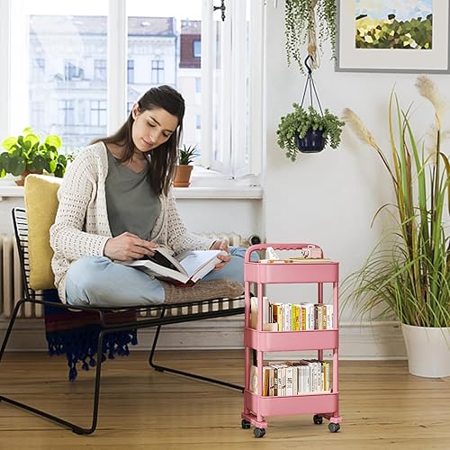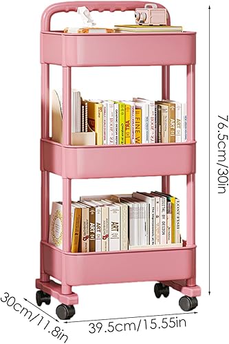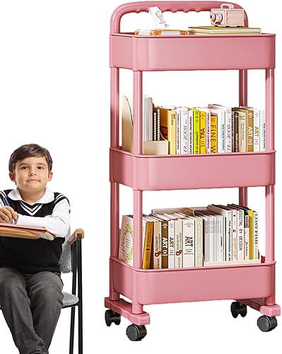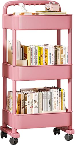 IDIDOS Portable Bookshelf Cart, Rolling Bookcase Cart, with Swivel Wheels and Brakes, Reusable Storage, Movable Bookshelf, Storage Shelf Rack for Kitchen, Office Bathroom, Laundry Room, Narrow Places