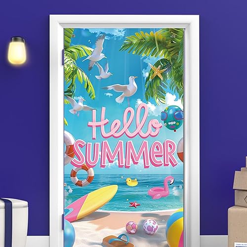 perfeclan Décorations de Fête sur La Plage, Couverture de Porte, Toile de Fond Photo pour Anniversaire, Festival, Piscine