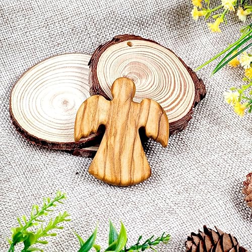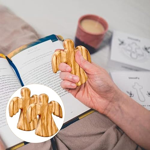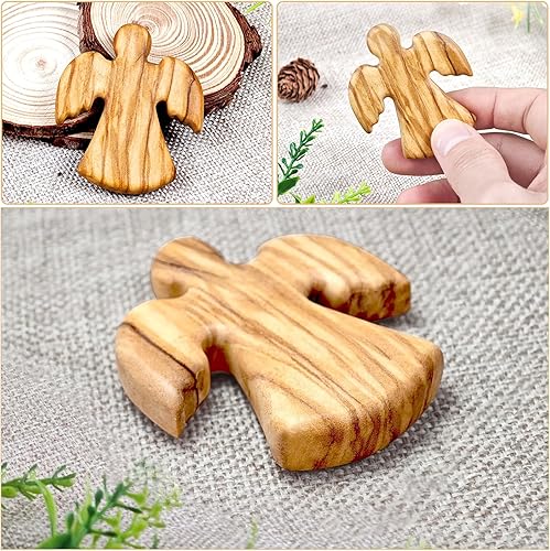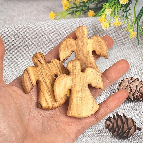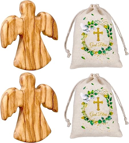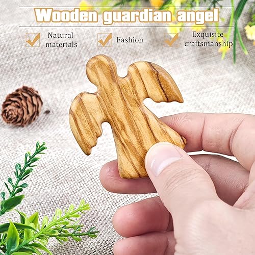 ZYEKIU Ensemble 4 Pièces Ange Gardien Guardian Angel Porte Bonheur en Bois D'olivier Ange Gardien en Bois D'olivier Contient 2 Sac Cadeau pour la Famille, Chrétiens, Amis, Patient, Cadeau Chrétien