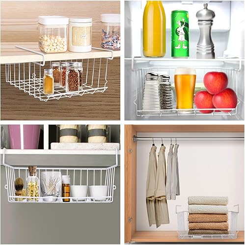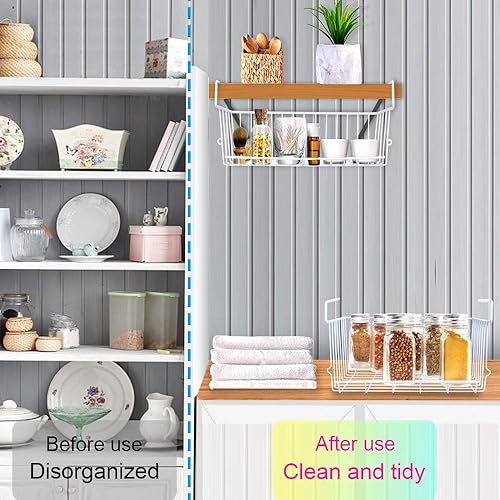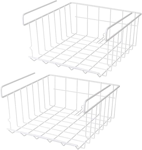 Paniers de Rangement Suspendus en fil Métallique - Organisateurs pour Armoire, étagère, Salle de Bain, Cuisine, Bureau - Lot de 2