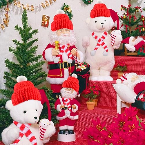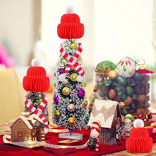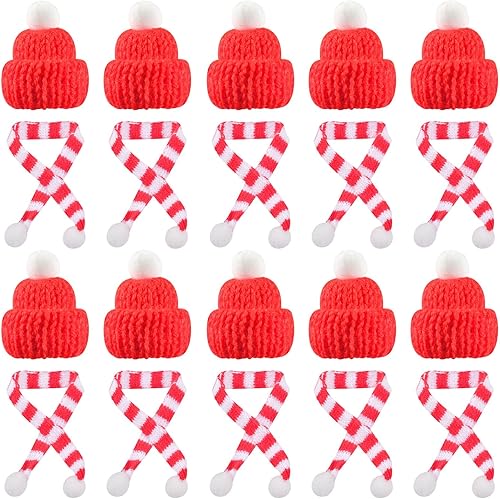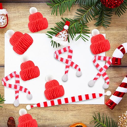 FGen Lot de 20 Mini Bonnets de Noël en Tricot - Écharpe et Décoration de Sapin - Bricolage