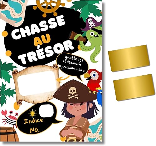 Cartes à Gratter Chasse au Trésor, Jeu Anniversaire Enfant 5-12 Ans, Kit 10 Cartes avec Pastilles, Intérieur/Extérieur (Pirates)