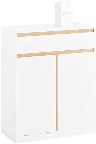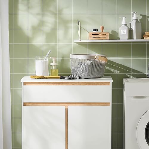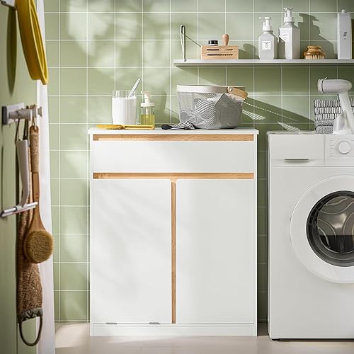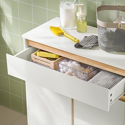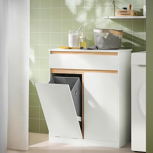 SoBuy Meuble Bas de Salle de Bain avec Bac à Linge Amovible Armoire à Linge Commode pour Salle de Bain Armoire Toilette avec 1 Tiroir, et 1 Panier à Linge, 71x33x85 cm, Blanc, BZR79-W