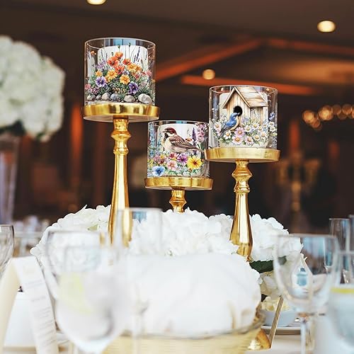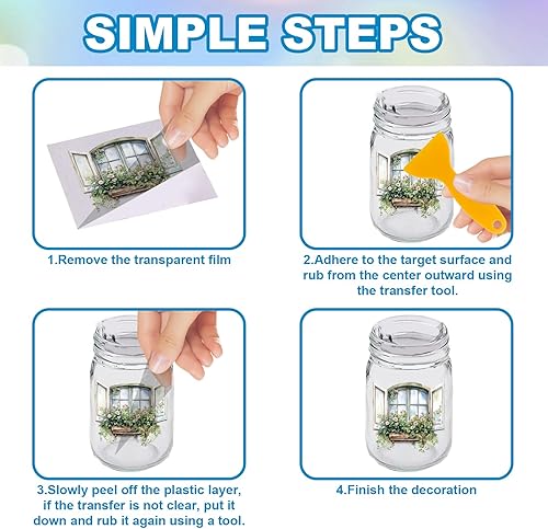 GLOBLELAND 18 Feuilles 3.9x3.6 pouces Rétro Fleurs Oiseaux Transfert à Frotter Jardin Coloré Vase Maison Décalcomanies Plantes Fleurs Tasse Autocollants de Transfert pour Meubles Vase Verre Artisanat