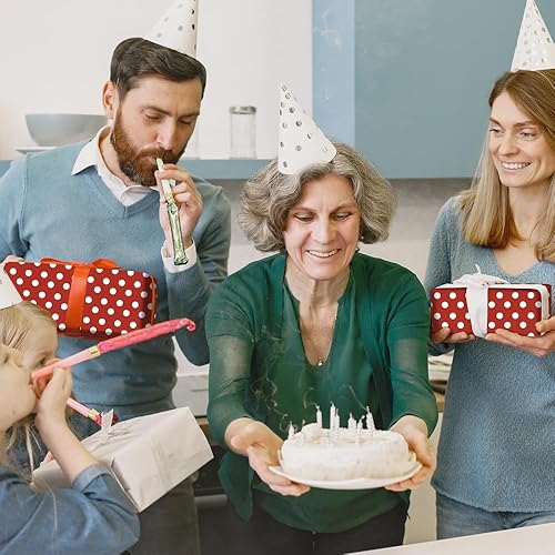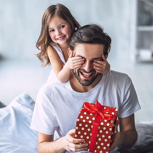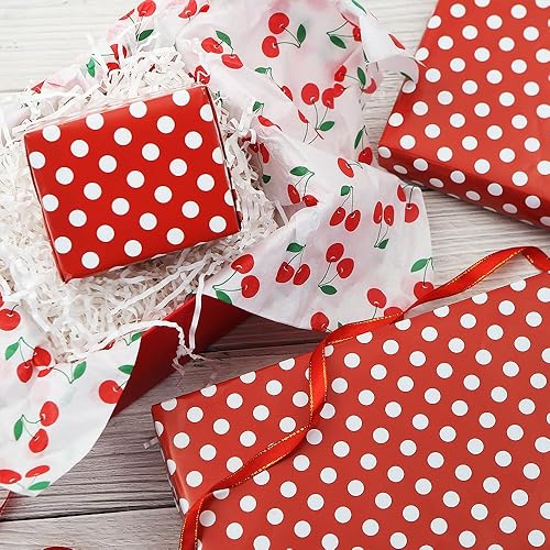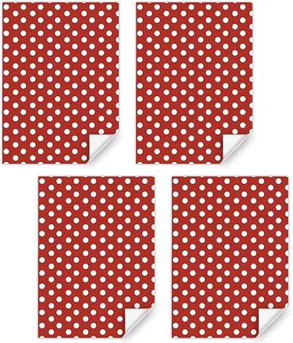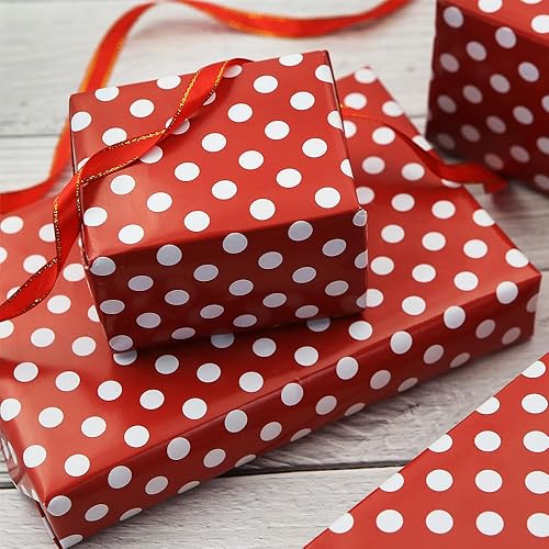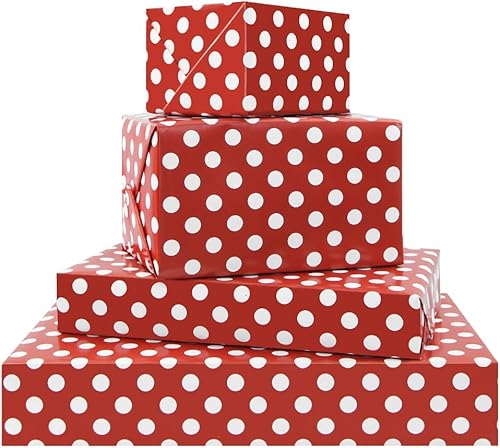 Lot de 4 feuilles de papier cadeau à pois rouges et blancs - Pour Noël et toutes les fêtes - 49,6 x 68,5 cm par feuille - Pour femmes, hommes, enfants, anniversaire, mariage, douche prénatale