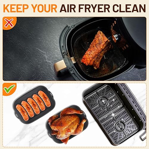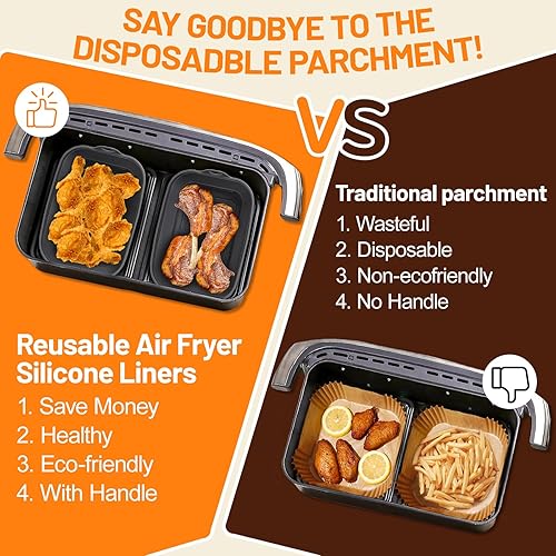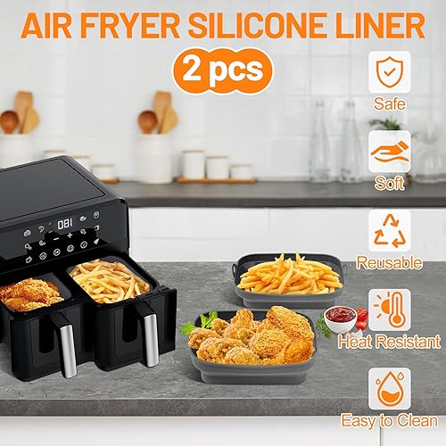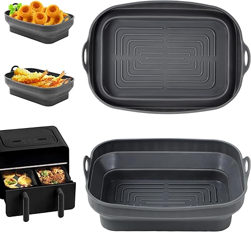 2 moules silicone pour friteuse air chaud/double zone : rectangulaires, pliables, antiadhésifs, résistants. Compatible Tefal, COSORI, Philips, etc.