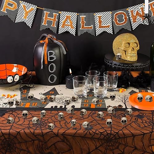 MUYAPAY 20 Pièces Mini Tete de Mort Decoration, Halloween Skull Résineux, Halloween Decoration Crane, pour Maison Hantée, Halloween Horror Party, Décoration pour Halloween (Gris Os)