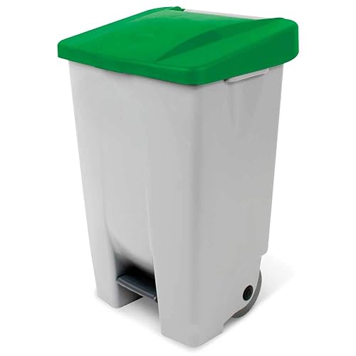 Poubelle à pédale avec roulettes, capacité 80 litres, HxLxP 740 x 490 x 420 mm, gris corpus, couvercle vert