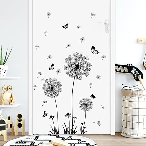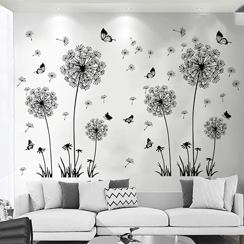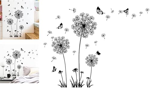Autocollant mural fleurs volantes fleurs papillon mural sticker auto-adhésif décor de la murale pour le salon stickers de pissenlits