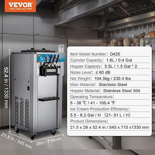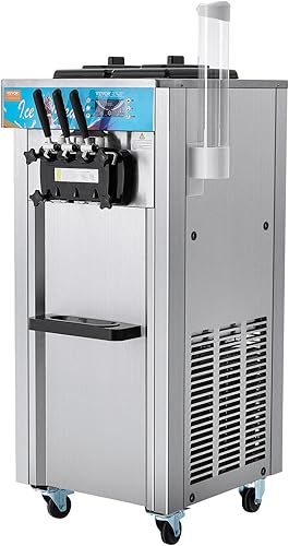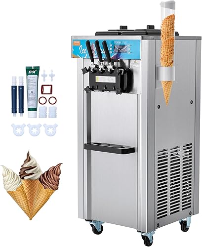 VEVOR Machine à Crème Glacée Commerciale 21-31 L/h 1500 W 3 Saveurs, Machine à Glace Italienne Trémie 2x5,5 L, Autoportant, Pré-Réfrigération, Nettoyage Automatique, pour Yaourt Café Snack-Bar