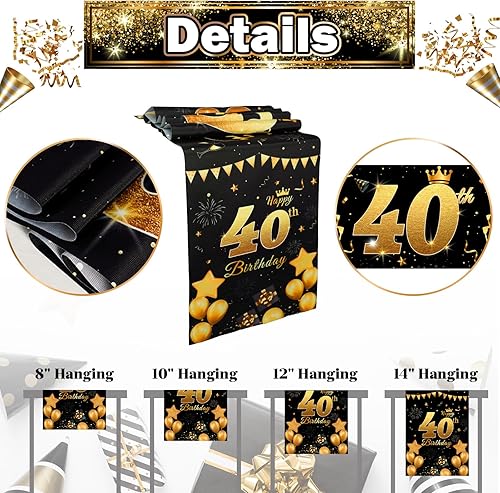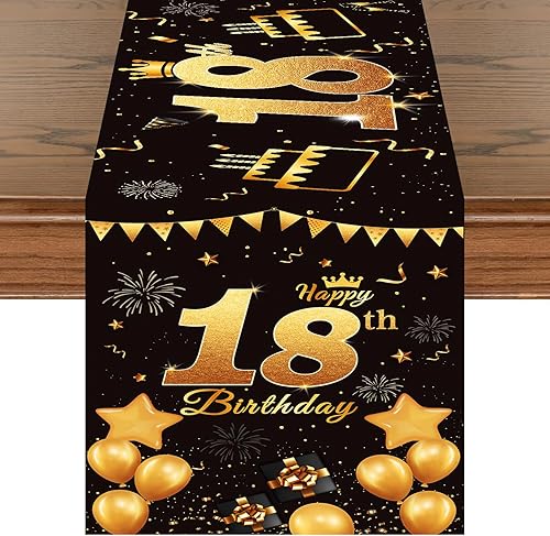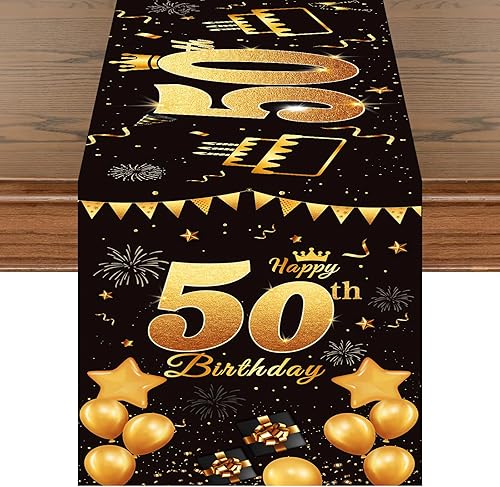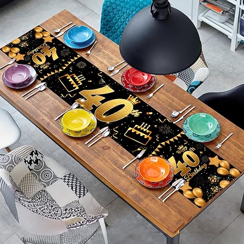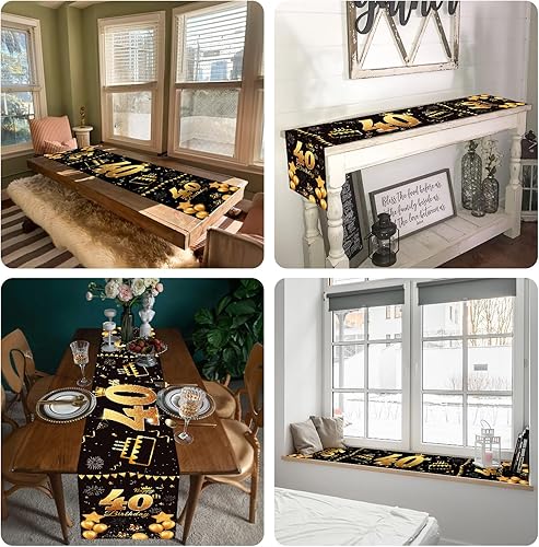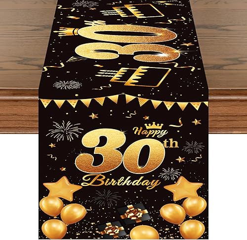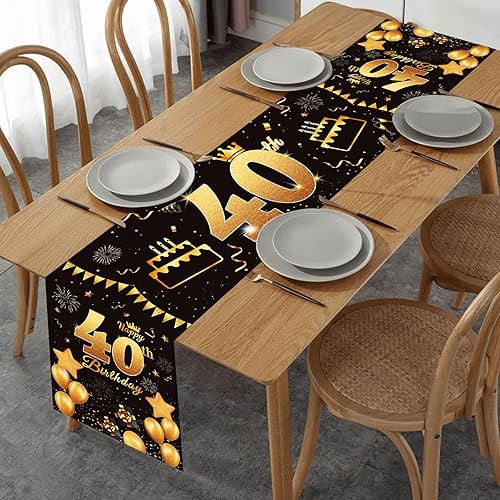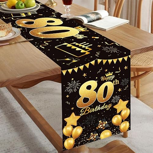 Chemin de table 80e anniversaire - Noir et doré - Chemin de table pour 80e anniversaire - Pour homme et femme - Décoration de table pour la maison, la cuisine, l'extérieur et l'intérieur - 180 x 35 cm