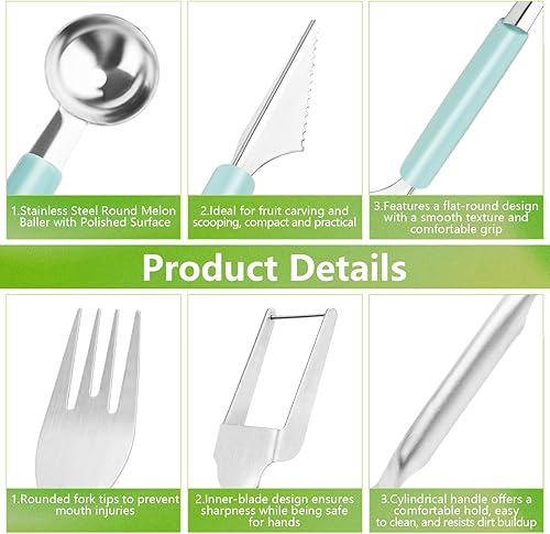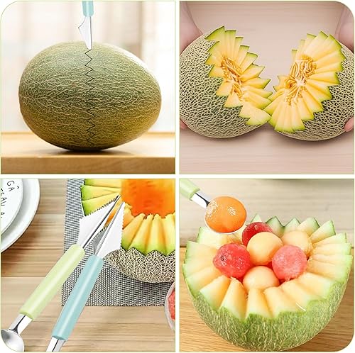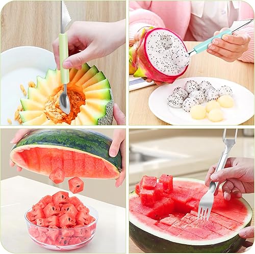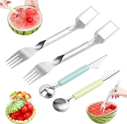 4 PCS Coupe Pasteque et Melon, Ensemble de Découpe Pasteque,Couteau à Melon et Cuillères à Boules en Acier Inoxydable pour Réunions de Famille et Camping