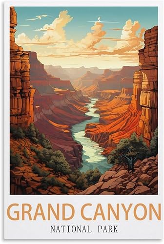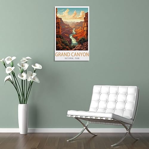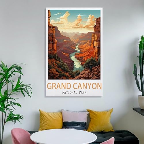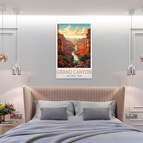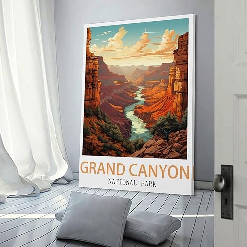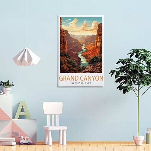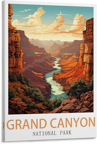 LOLWNNI Poster de voyage vintage du parc national du Grand Canyon - 30 x 45 cm - Impression sur toile - Décoration murale pour salon, chambre à coucher