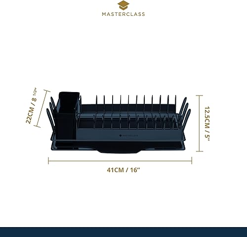 Égouttoir à vaisselle compact MASTERCLASS, 41 cm x 22 cm x 12,5 cm, Noir/Argent