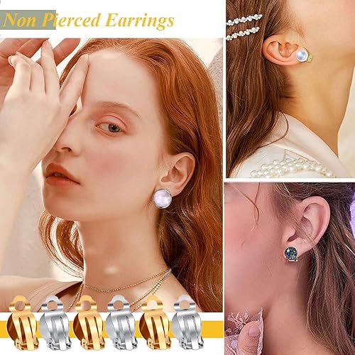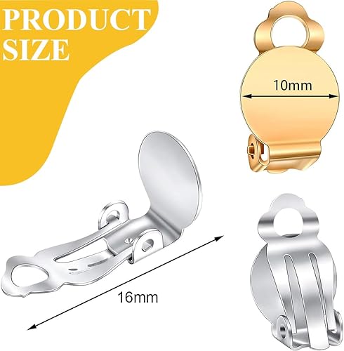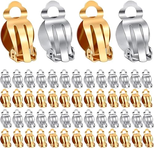 WKRTDY Lot de 50 Boucles d'oreilles à Clipser en Acier Inoxydable, Résultats Plat, Doré, Non Percées, 2 Couleurs, Plateau Rond, Composants Cerceaux d'oreille