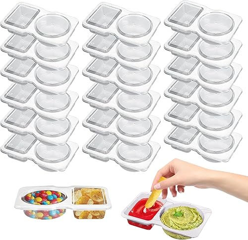 SFSSHUI 20 Pcs boîte à sauce à double compartiment,contenants à condiments à double compartiment,clear plastic snack container,snack box,Réutilisable.