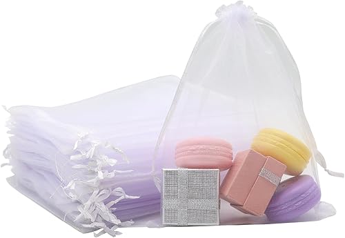 JRSHIRLEYLTD Sachets En Organza Blanc Protection Avec Cordon De Serrage, 50 PièCes, 15 X 20 Cm, Raisins, Sachets Cadeaux Pour Bijoux, Bonbons