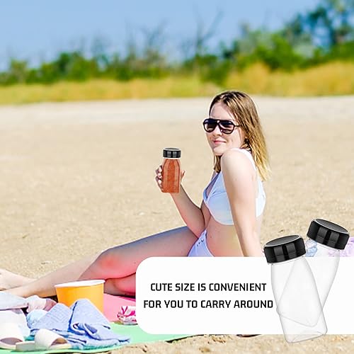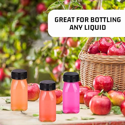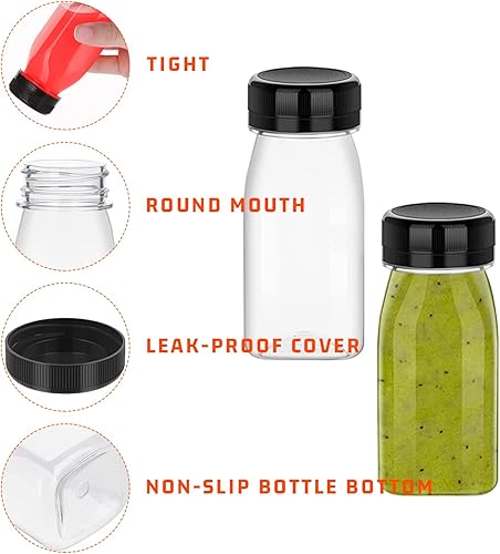 Paquet de 6 bouteilles de jus en plastique avec 1 étiquette de fruit, avec couvercles hermétiques pour le stockage de lait, smoothies, boissons maison