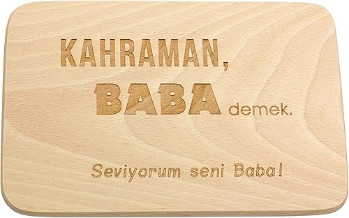 Planche à déjeuner en Bois - Snack Board avec Gravure Turque - Cadeaux pour Papa - Planche en Bois avec découpe de Coeur - Hediye Baba